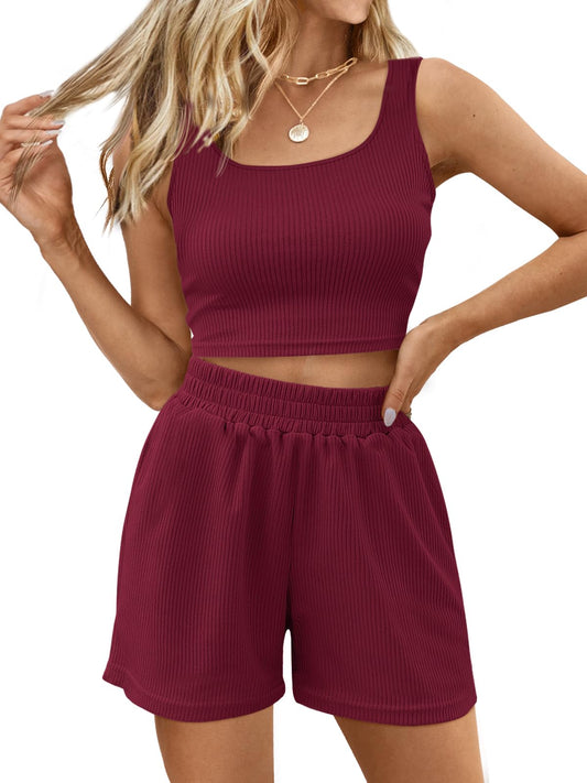 Trendy Queen Two Piece Summer Outfits 2 Piece Sets 2025 Sleeveless Matching Lounge Crop Top High Waisted Short