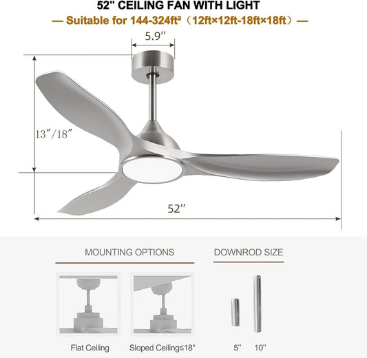52 Inch Ceiling Fans with Lights and Remote,Ultra Silent Low Profile