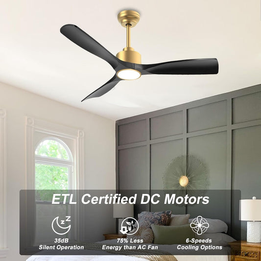 52 Inch Smart Ceiling Fan with Quiet DC Motor, 3 Blade High CFM Indoor