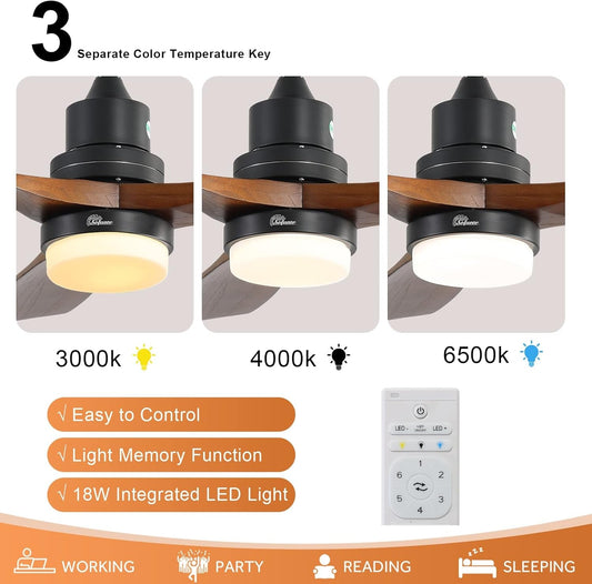 52 Inch Ceiling Fans with Lights,Remote Control Multifunctional Quiet