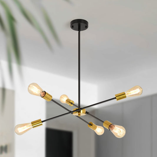 Black Sputnik Chandelier 6 Lights Modern Industrial Ceiling Light Mid Century Vintage Contemporary Pendant Dining Room Lighting Fixtures Hanging