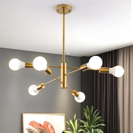 Sputnik Chandelier,Gold Modern Industrial Chandeliers 6-Light,Mid Century Ceiling Lighting Fixture for Living Room,Kitchen