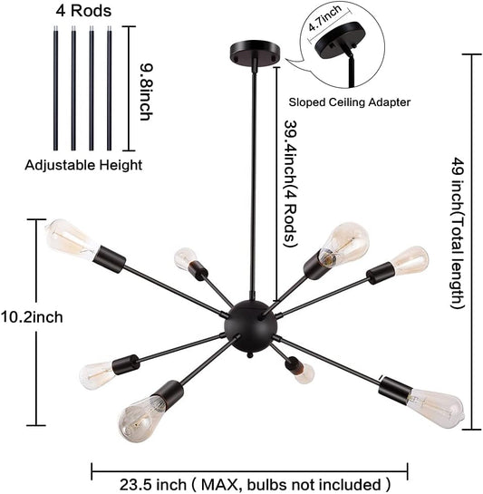 8 Lights Dining Room Light Fixtures Modern Sputnik Chandelier Black