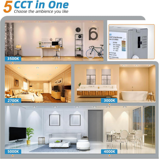 24 Pack 5CCT LED Recessed Downlights Canless Wafer Dimmable ETL Certified 2700K To 5000K