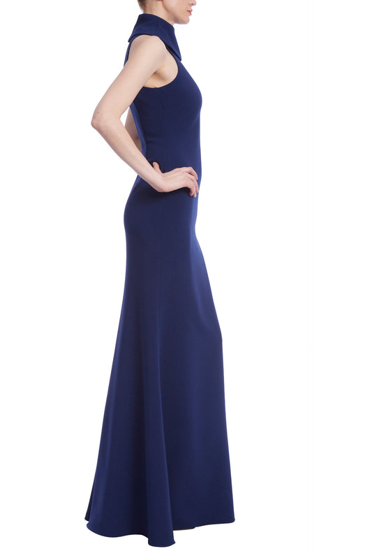 Badgley Mischka Racerback High Neck Column Crepe Gown