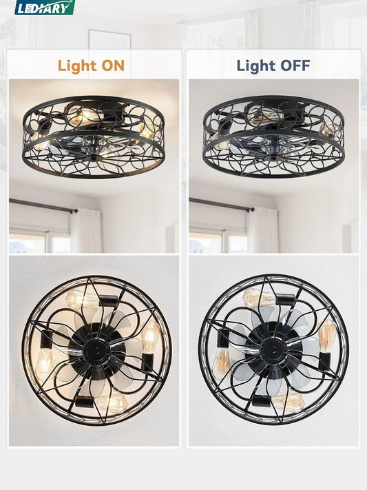 Black Caged Ceiling Fan With Lights Low Profile Flush Mount Remote