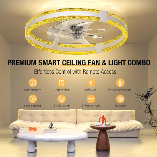 20 Inch Flush Mount Ceiling Fan With Smart Control