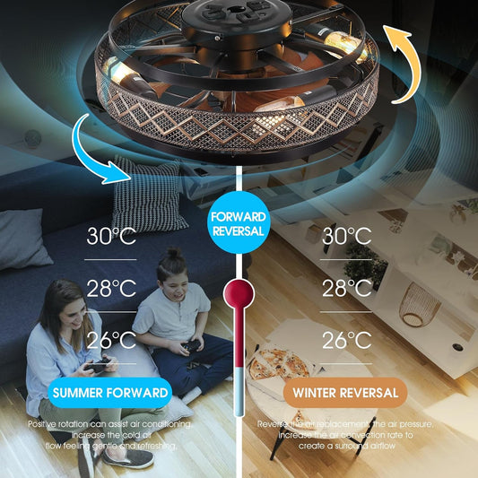 20 Inch Black Flush Mount Smart Ceiling Fan With LED Lights