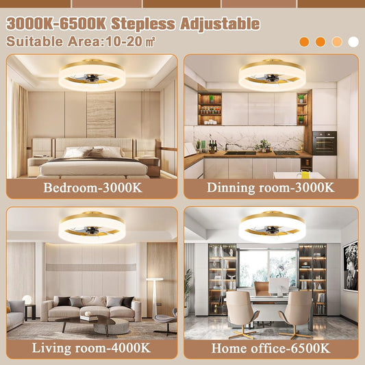 Regular price From $99.99 USDRegular priceUnit price / per$99.99 USDSale price From $99.99 USDLEDIARY Caged Ceiling Fans with Lights, White Flush Mount Ceiling Fan with Remote, Small Low Profile Bladeless Ceiling Fan Light Fixture for Bedroom, Kitchen, Dining Room-White Gold Color