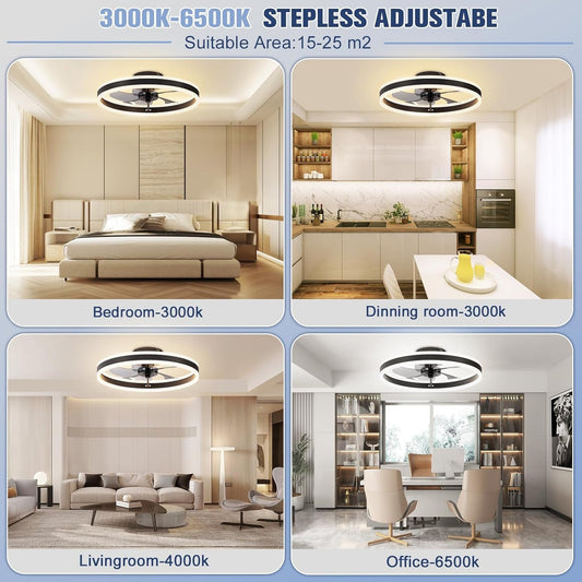 addlon Ceiling Fans with Lights and Remote, 20'' Low Profile Ceiling Fans, 3000-6000K Dimmable Modern Flush Mount LED Fan Light, Fandelier Ceiling Fan for Bedroom, Kitchen, Living Room, Black