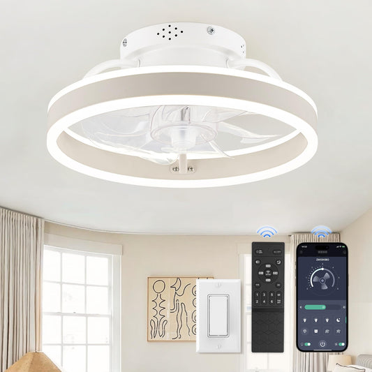 20‘’ Ceiling Fan with Light, Upgraded Low Profile Fan, Flush Mount Ceiling Fan, 6 Speeds, Dimmable LED, App & Remote Control, Quiet DC Motor, for Bedroom, Living Room, F115 White