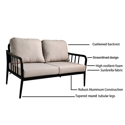 5PC Outdoor Aluminum Patio Furniture Modern Chat Sofa Conversation Set
