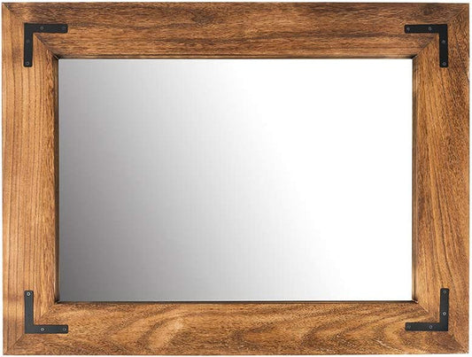 Rustic Wood Framed Wall Mirror 32 Inch Brown Vanity