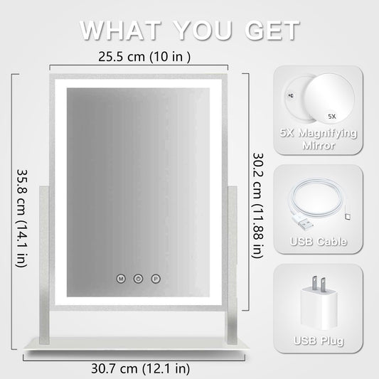 17In White Lighted Makeup Mirror 3 Color Lighting Modes And 5X Magnification