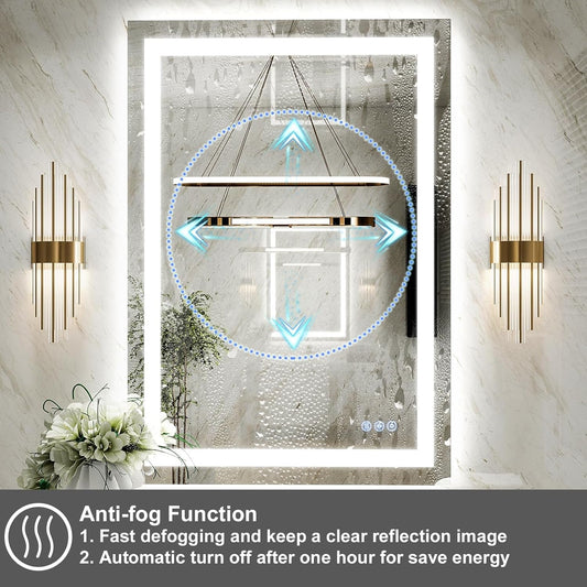 26x38 Inch LED Bathroom Mirror Dimmable Lighting Anti Fog