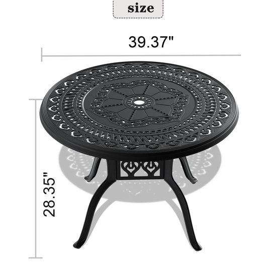 40-inch Cast Aluminum Patio Dining Table With Black Frame and Umbrella Hole