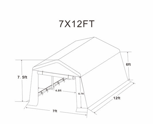 7x12 ft Outdoor Gazebo Portable Storage Shelter Shed with 2 Roll up Zipper Doors & Vents Carport