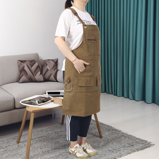 Long heavy-duty canvas tool apron, carpenter apron, carpenter 16 ounces, fully adjustable, no need for waxing