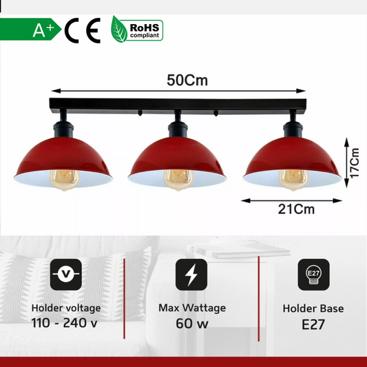 Vintage 3 Way Rustic Red Pipe Ceiling Light E27