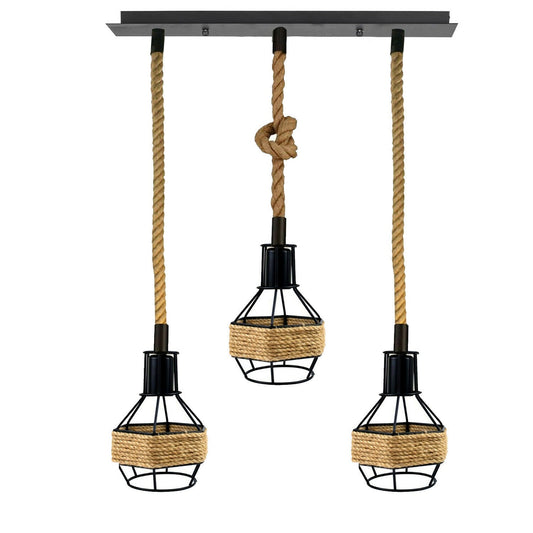Vintage 3 Head Rope Pendant Light Fitting