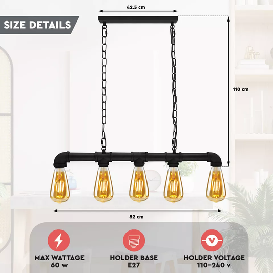 Waterpipe Ceiling Light 5 Light Chandelier Black