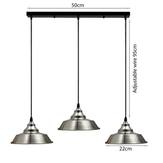 Industrial Vintage Loft Kitchen Bar 3 Fittings Ceiling Metal Light Shade