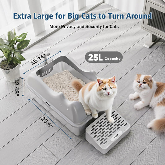 Enclosed Cat Litter Box Stainless Steel with Lid, XL Extra Large Litter Box for Big Cats, Metal High Sided Litter Box with Scoop, Non-Sticky Anti-Leakage Easy Cleaning Gray