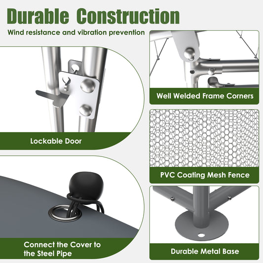Metal chicken cage, three support steel wire impregnated mesh cage, Oxford cloth silver plated waterproof and UV resistant