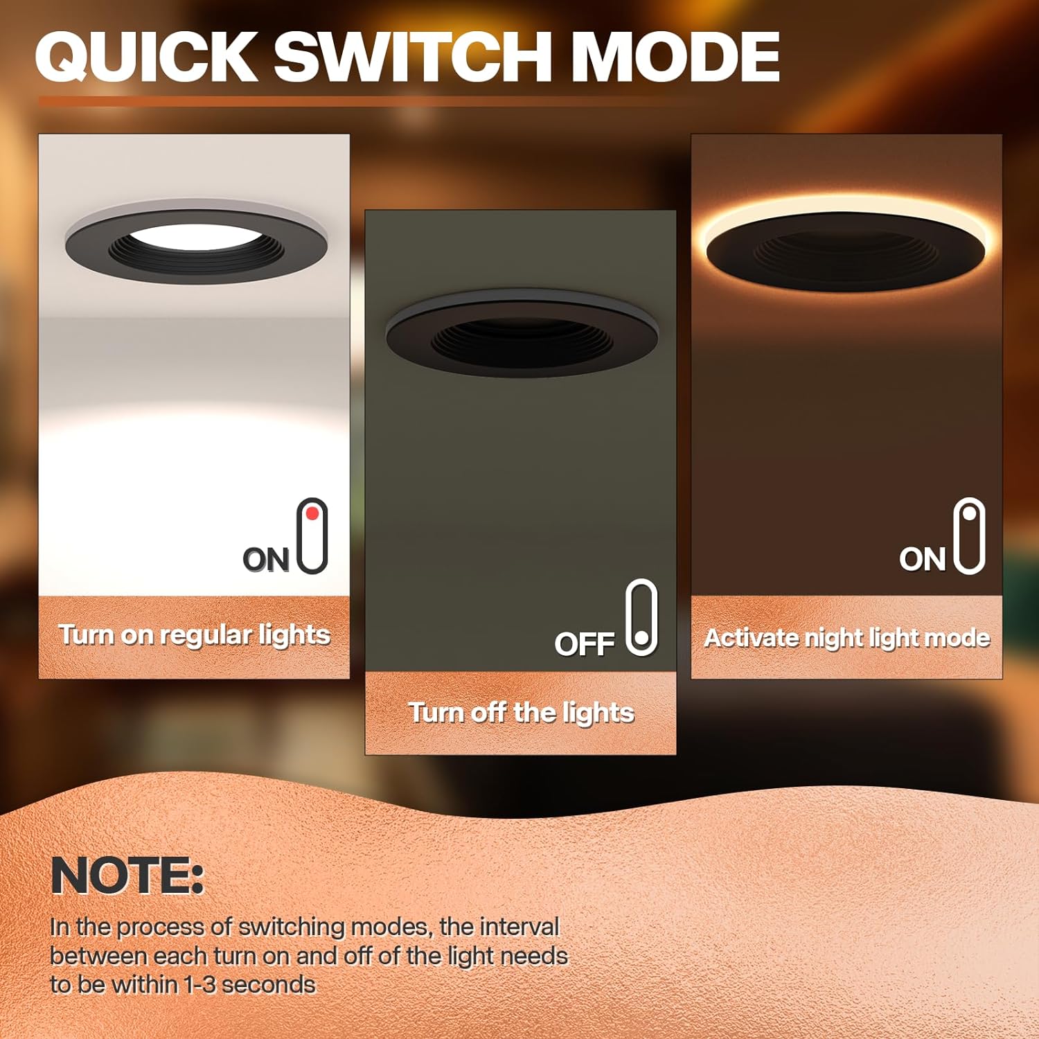 - 💡【Night Light Feature】 5CCT 4 inch retrofit led recessed lighting with night light function can provide 2000K amber color temperature alone. Creates comfort, warmth, soft lighting and extra ambiance to help you fall asleep at night.