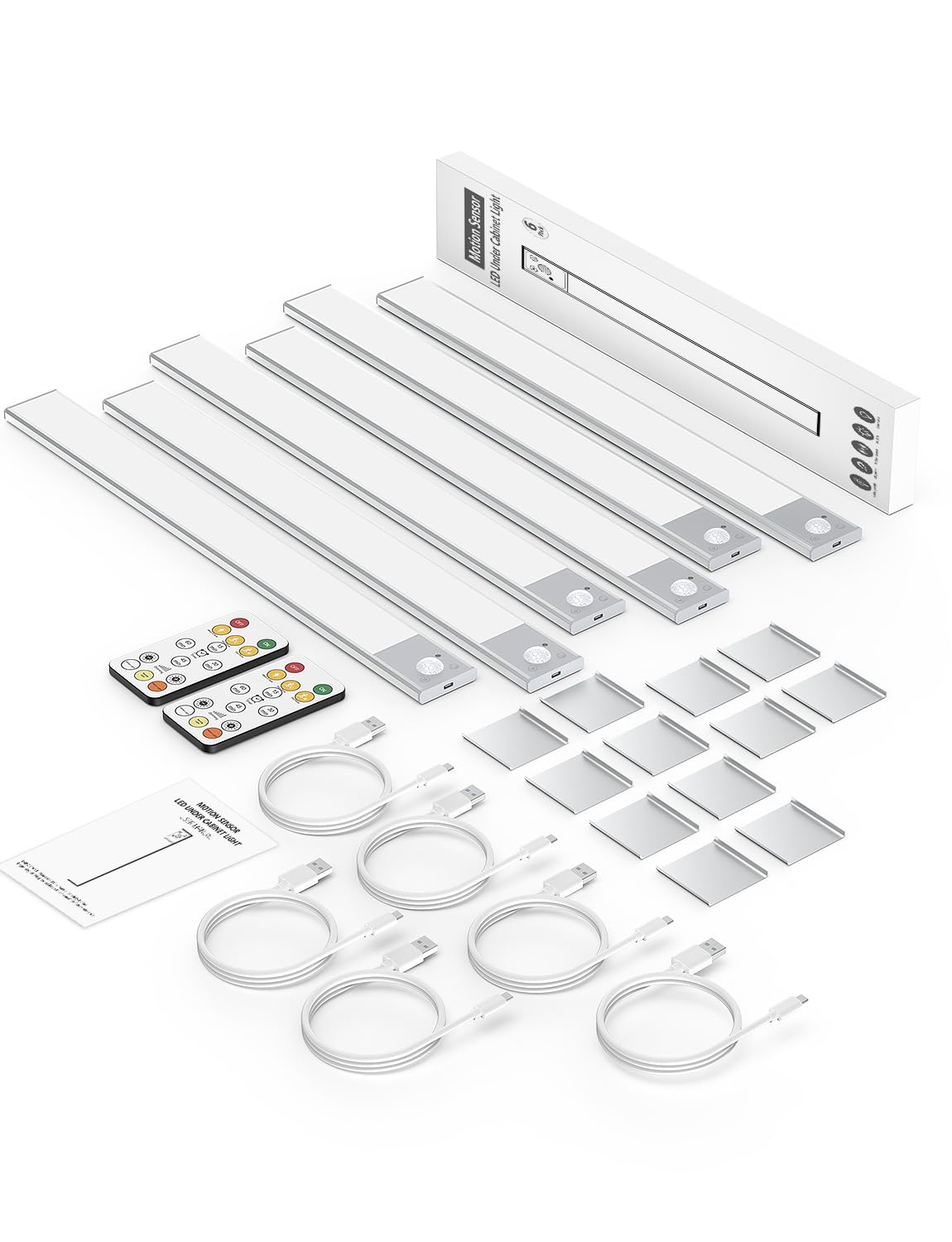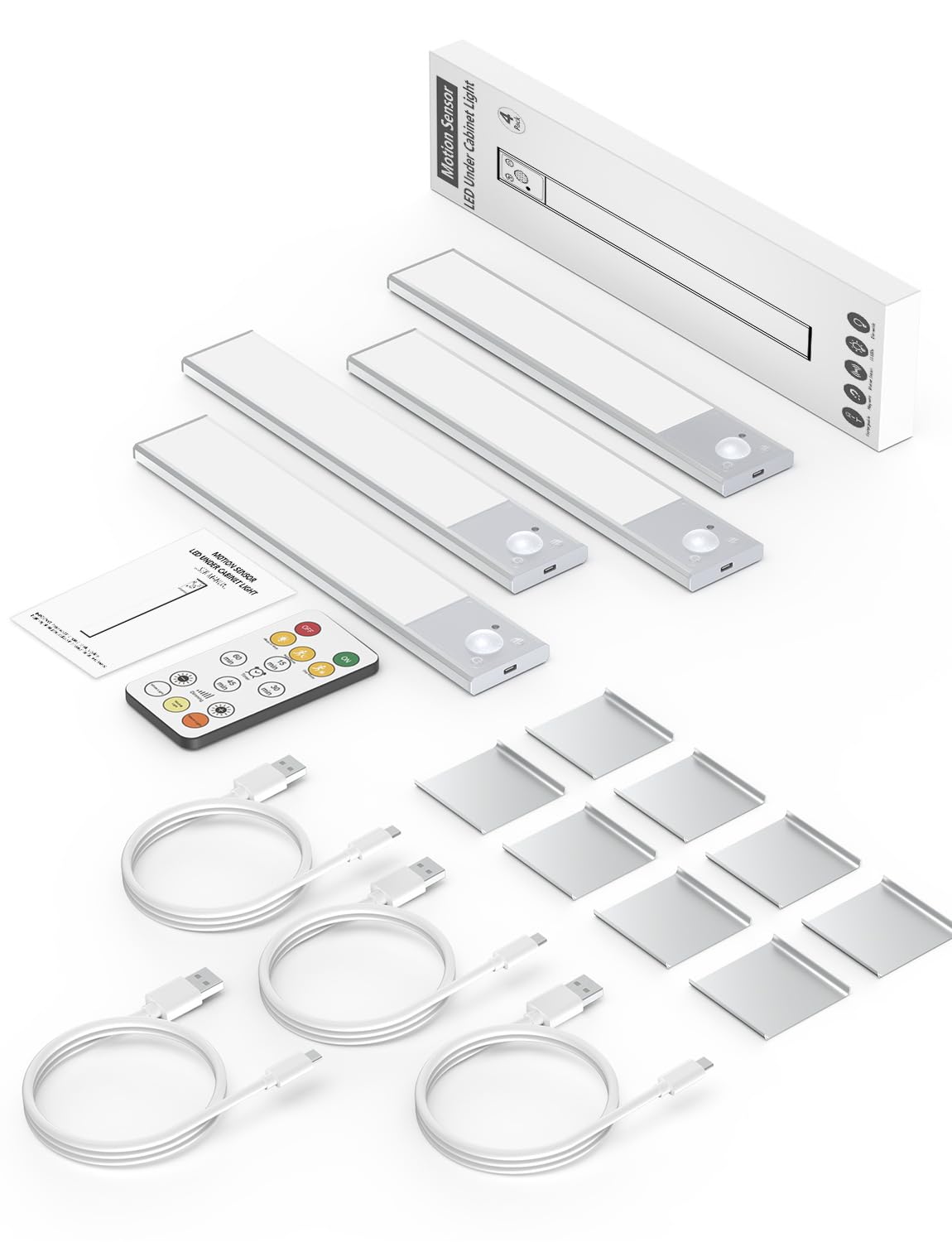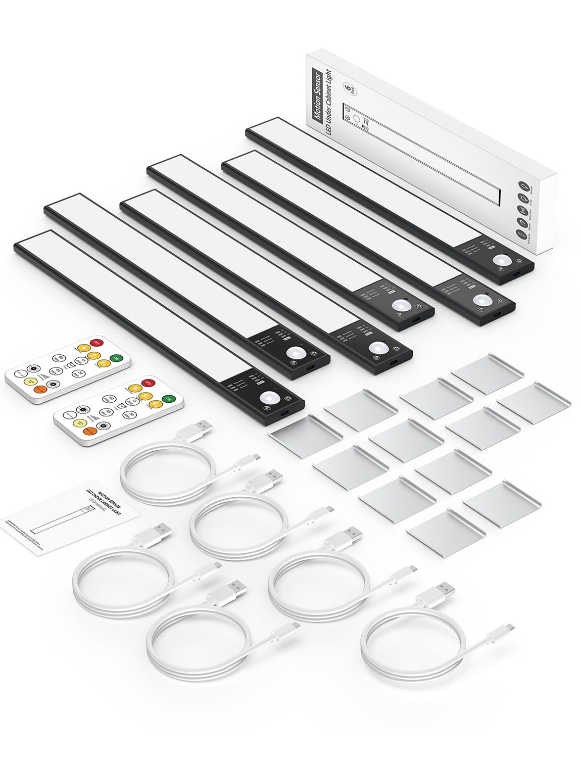 - 【3 Color Temperature & 4 Timers & 6 Levels Dimmable Under Cabinet Lights with Remote】— These under cabinet led lighting have 3 colors(warm white/natural white/cold white). With 4 time settings of 15Min/30Min/45Min/60Min, you can also adjust the brightness from 10% to 100% by pressing the button on the remote control, which can be operated within 16ft.