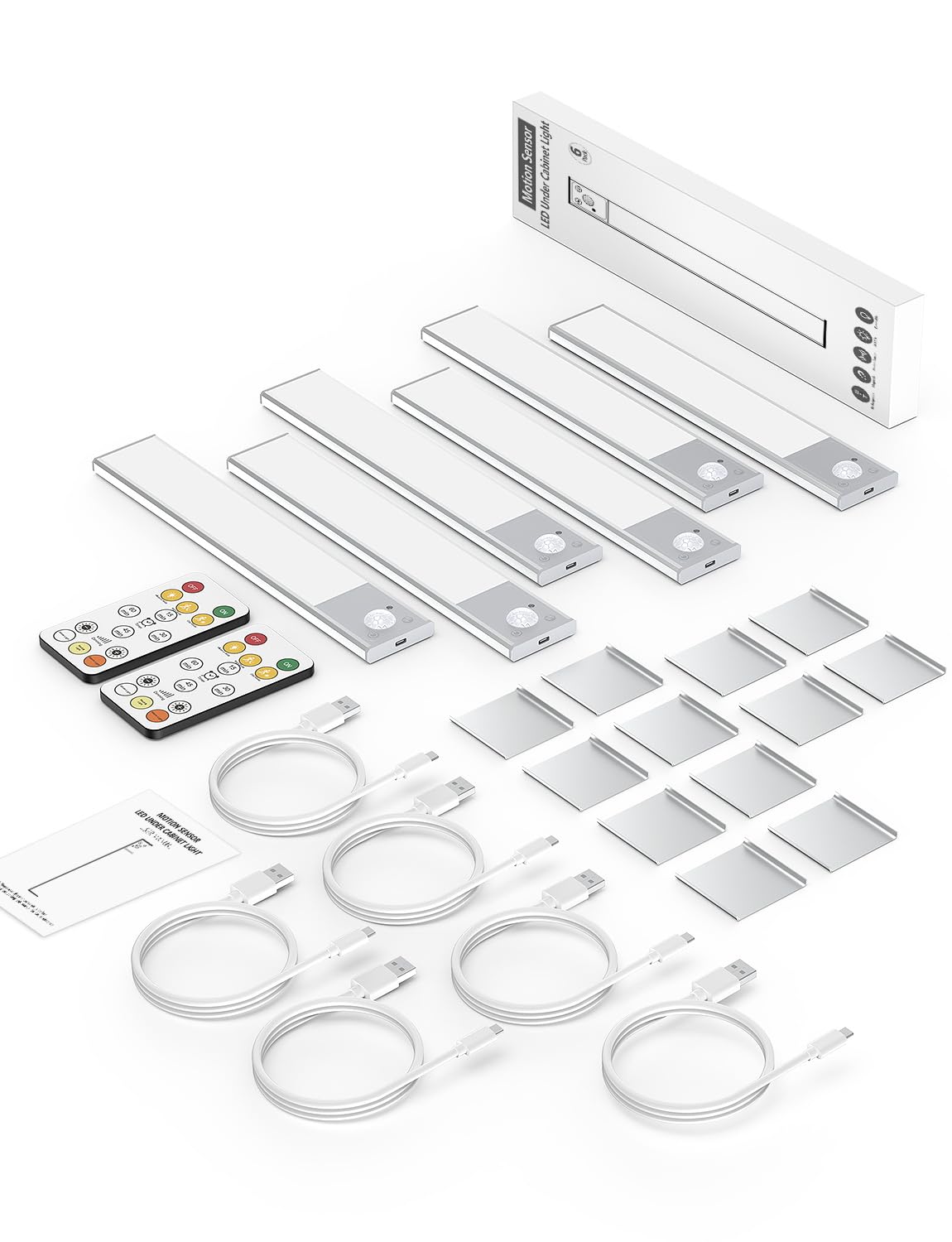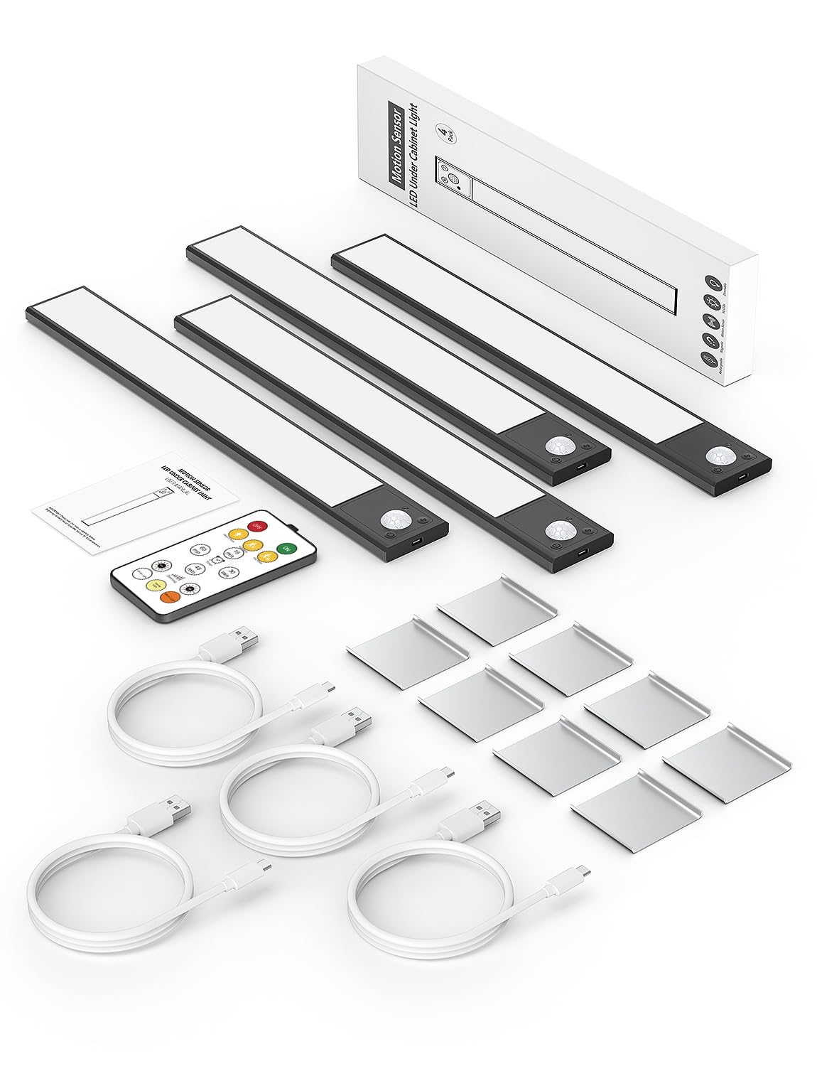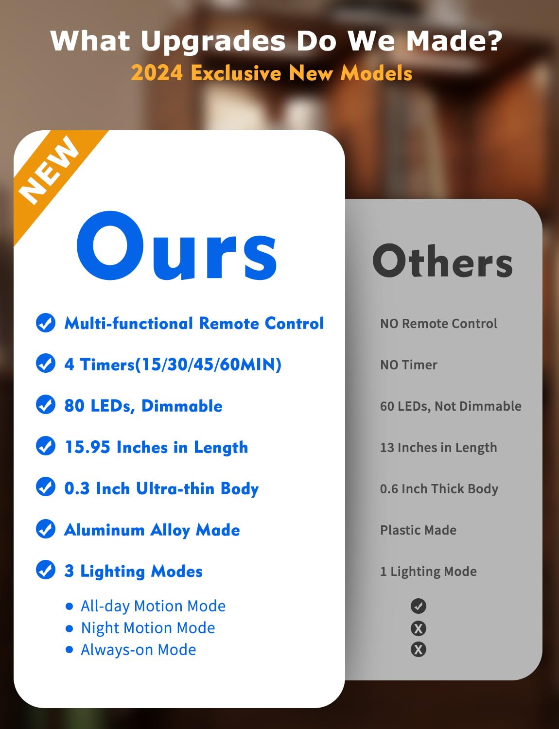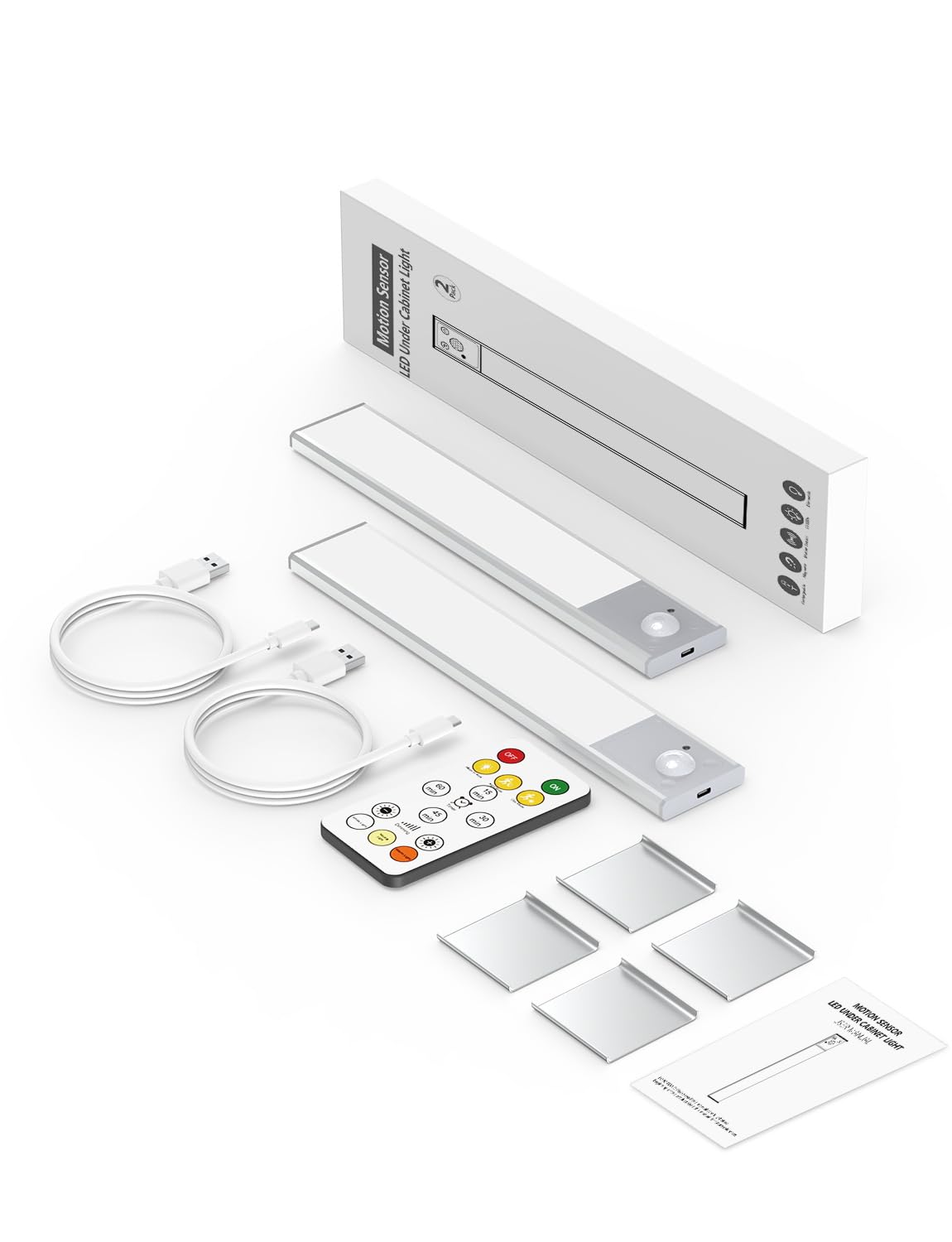 - 【3 Color Temperature & 4 Timers & 6 Levels Dimmable Under Cabinet Lights with Remote】— These under cabinet led lighting have 3 colors(warm white/natural white/cold white). With 4 time settings of 15Min/30Min/45Min/60Min, you can also adjust the brightness from 10% to 100% by pressing the button on the remote control, which can be operated within 16ft.