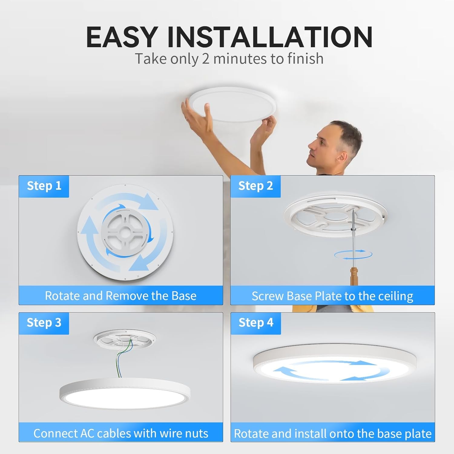 - Easy Installation: Complete installation in just two simple steps! Mount the base and twist the light into place. All necessary installation accessories are included for your convenience.