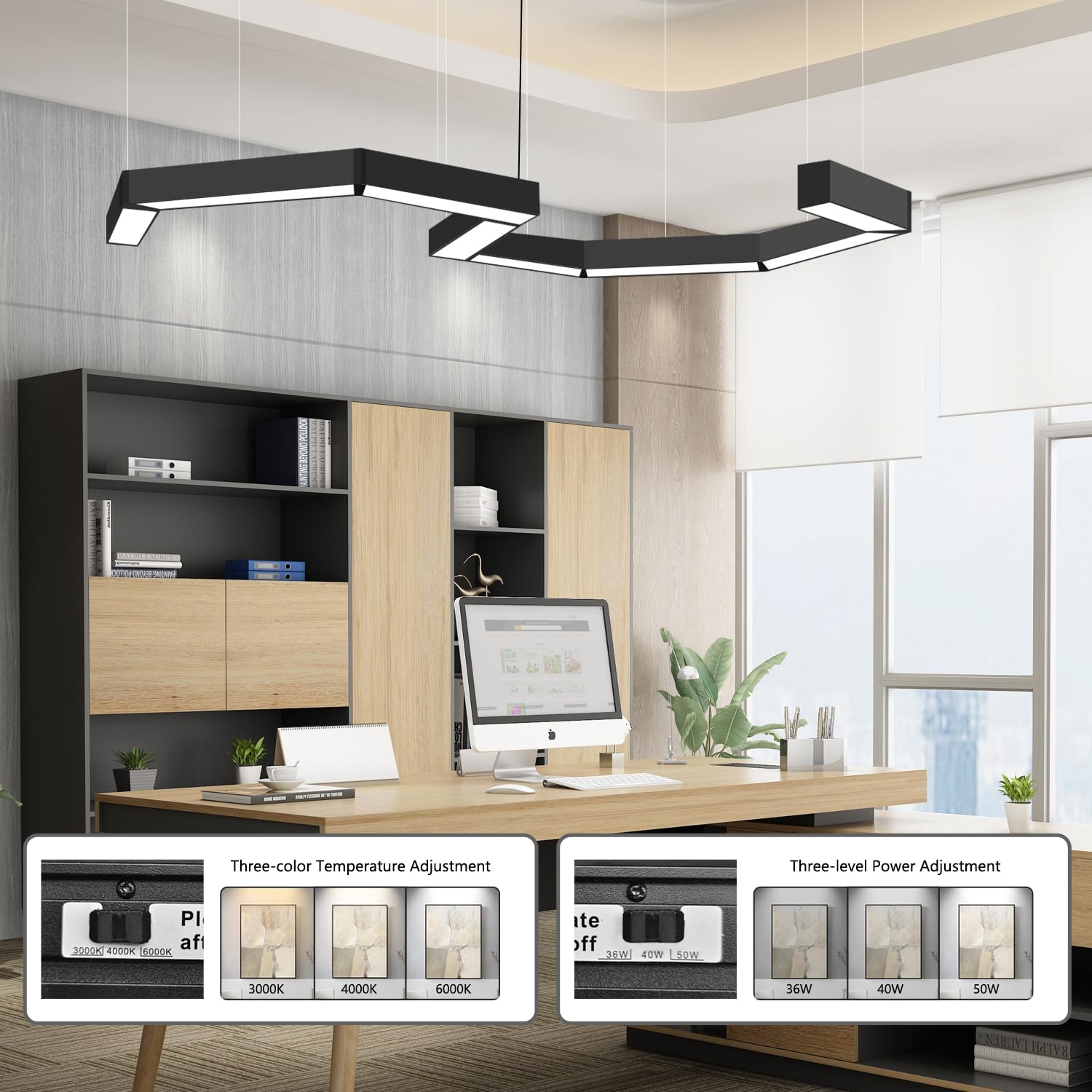 20FT LED Linear Light, 250W Pendant Light Fixtures, 0~10V Remote Switch, 3000K 4000K 6000K Color Changing Function, Combination Black Ceiling Shop Light, Suspended Office Lighting Fixture