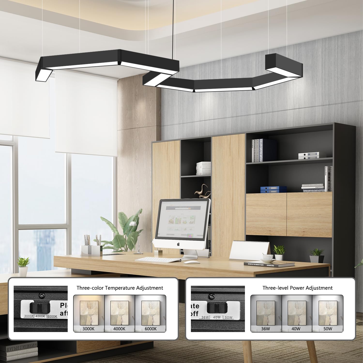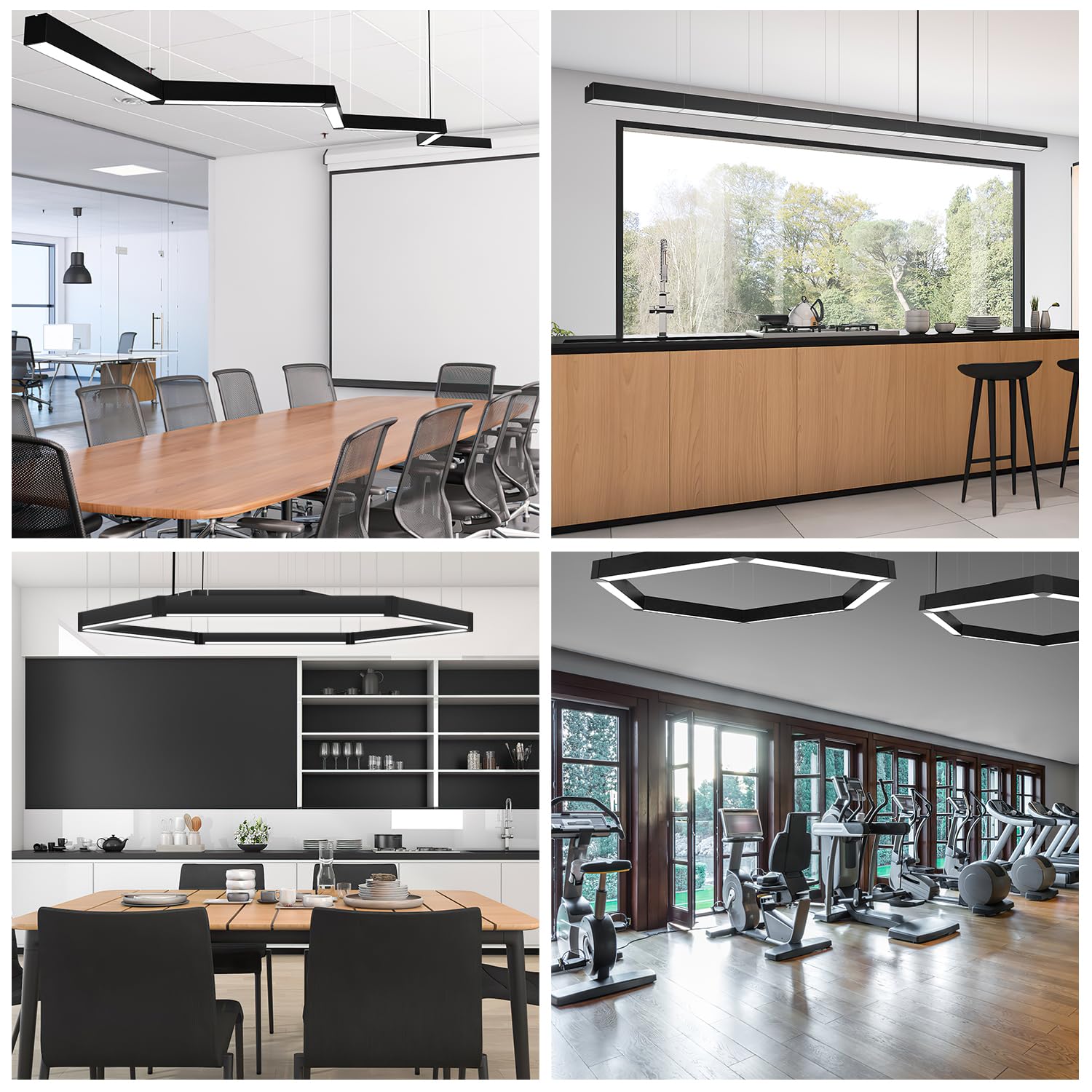 - Commercial Grade Built to Last: Frosted down light lens and glare-free design produce soft and even lighting. Die-cast Aluminum housing for lightweight and fast heat sink. All accessories included for suspension mount. It is easy to adjust the hanging height from 0~4ft.