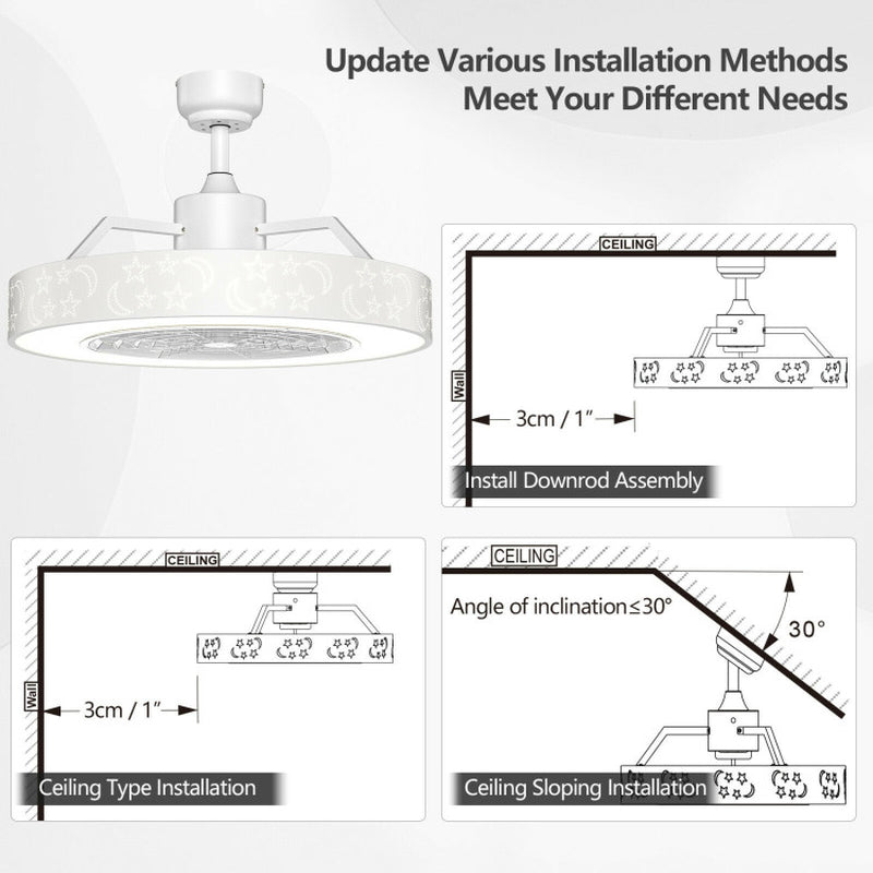 If you are looking for a ceiling fan that combines beauty with practicality, look no further! The Stylish 23-Inch Ceiling Fan not only enhances your home's decor with its stunning starry lampshade but also provides versatile lighting and cooling options to suit various atmospheres. With quiet operation, easy controls, and straightforward installation, this multifunctional ceiling fan is the perfect addition to elevate your home environment.