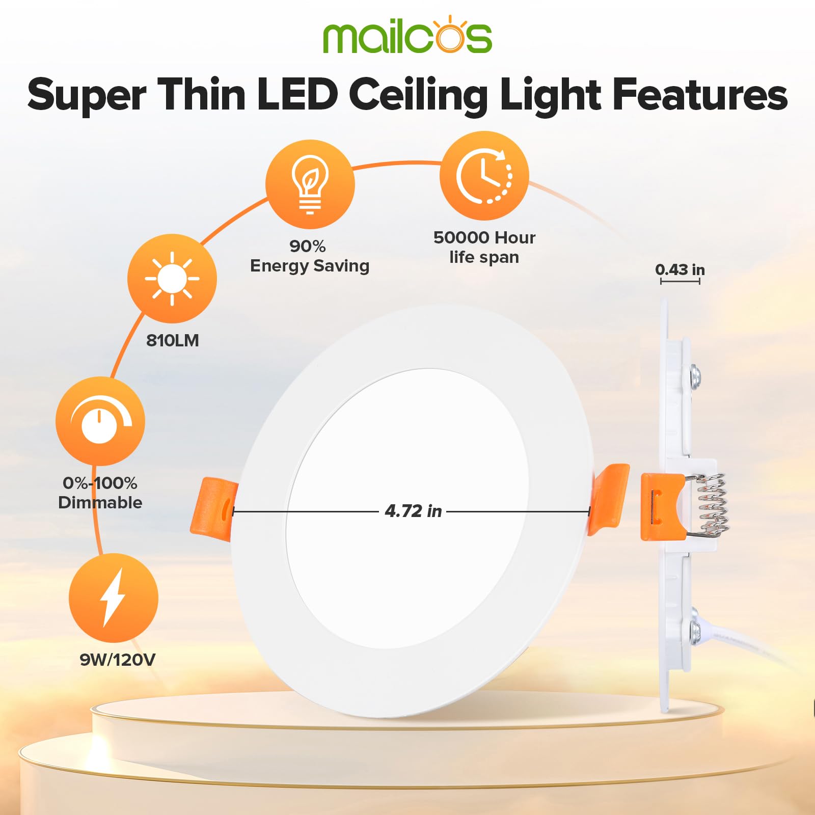 - Safe & Stable: Our high-quality recessed lighting is IC rated, which is permitted to be in contact with insulations in ceilings, meaning the junction box is thermally protected. It won't have a fire hazard when light was installed in various ceilings and overhead joists. All Mailcos's recessed lights are certified by ETL of a high standard.