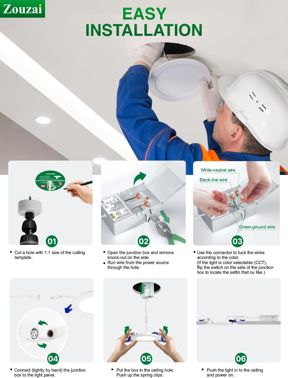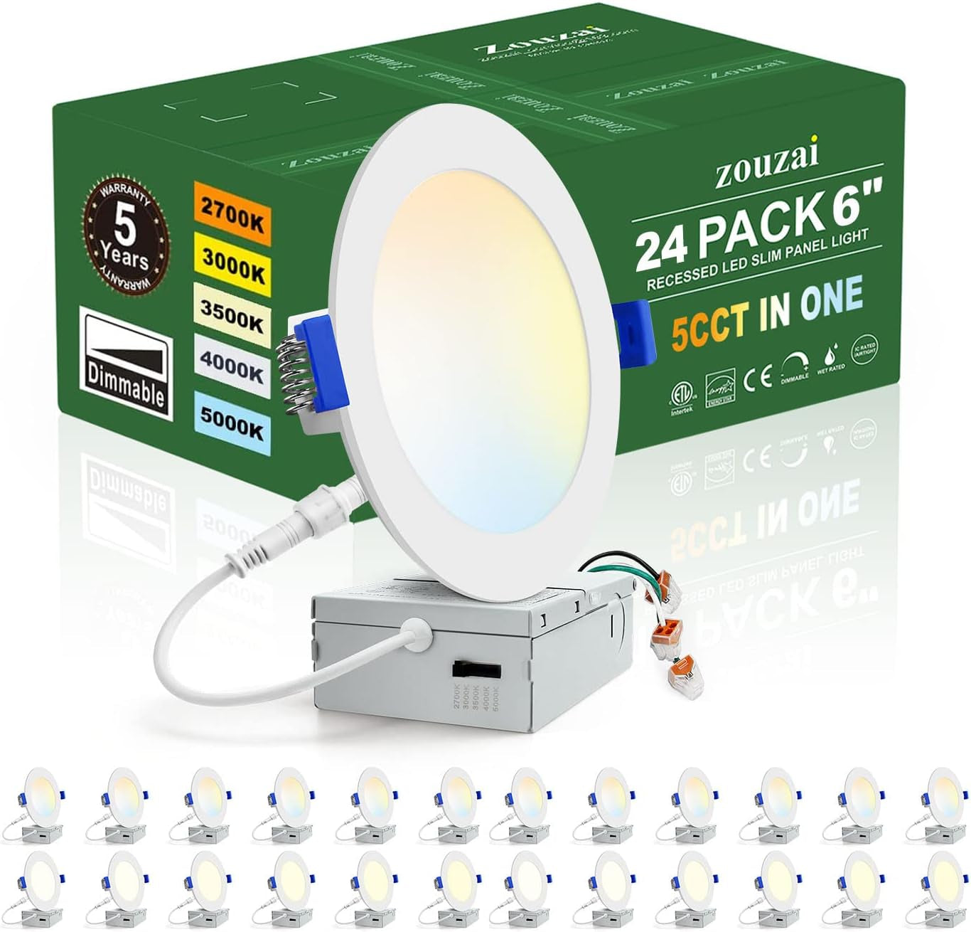 24 Pack 6 Inch Ultra-Thin LED Recessed Ceiling Light with Junction Box