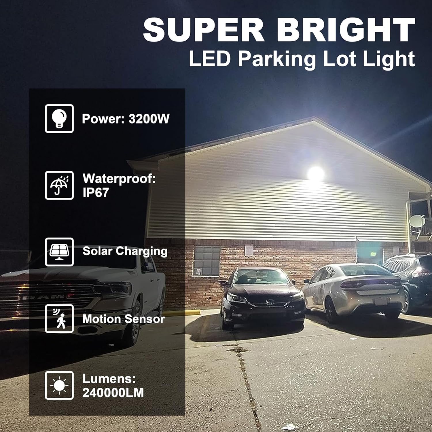 3-Pack Solar Street Light - 3200W Outdoor Parking Lot Lights, 240000 Lumens, Dusk to Dawn Motion Sensor, IP67 Waterproof, Solar Street Light Outdoor,Commercial Grade