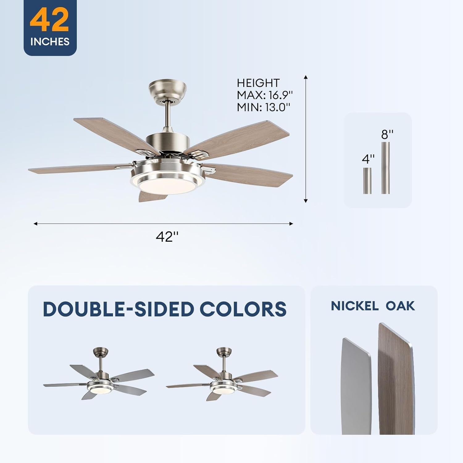 42 Inch Ceiling Fans with Lights and Remote/App Control, Modern Nickel