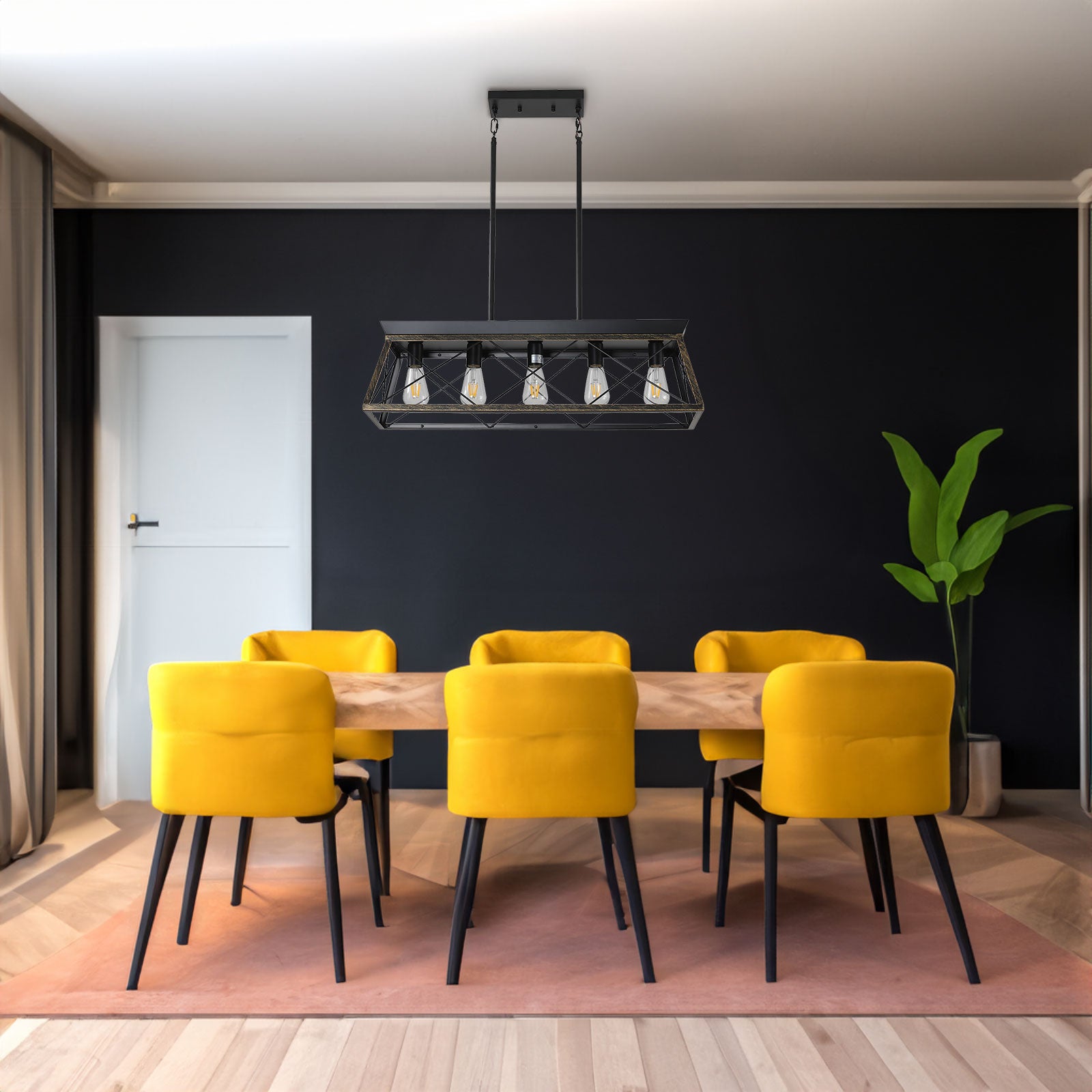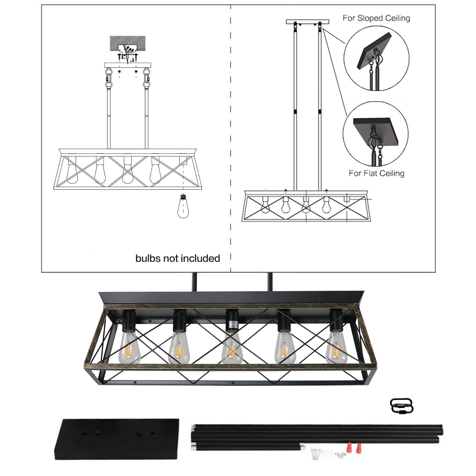 5-Light Farmhouse Chandeliers for Dining Room Metal Rustic Pendant Island Light Modern Rectangular Island Lights (No Bulbs)