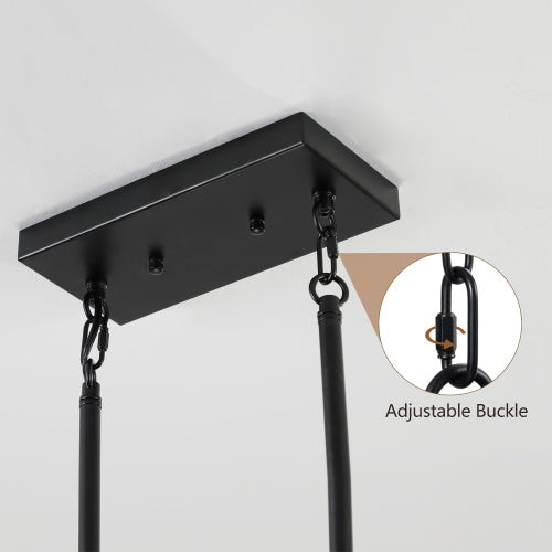 Farmhouse lighting: The kitchen island lamp consists of a solid wood frame and an iron and glass lampshade canopy. The slender black iron grille and 8 iron corners accentuate the industrial style of this dining room lighting fixture, making it the perfect choice for kitchen island lighting. Size & Wide Application: Length: 31.5 inches, Width: 10.2 inches, Height: 33.5 inches. There are four slings inside the box, which can flexibly adjust the hanging height of the large chandelier. The luminaires can be mounted on flat, sloping or vaulted ceilings. Bulb Requirements: Up to 5 bulbs, E26 base (bulb not included), 60W, compatible with LED, incandescent, CFL and halogen lamps. Extensive use: The 5-lamp chandelier in the farmhouse is perfect for dining rooms, kitchen islands, living rooms, entrances, foyers, corridors, porches, farmhouses, dining rooms, bars, etc.