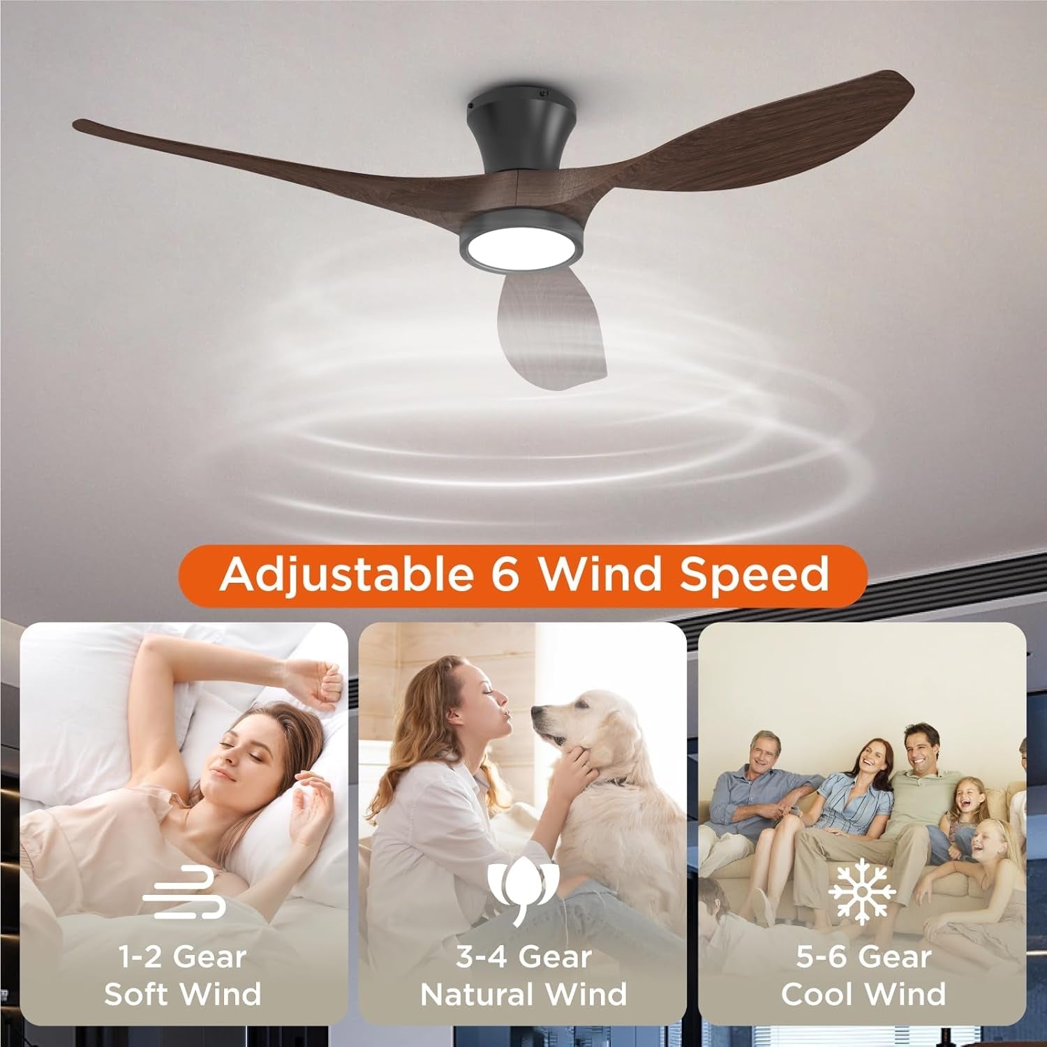 52 Inch Ceiling Fans with Led Lights Remote Control Flush Mount Low
