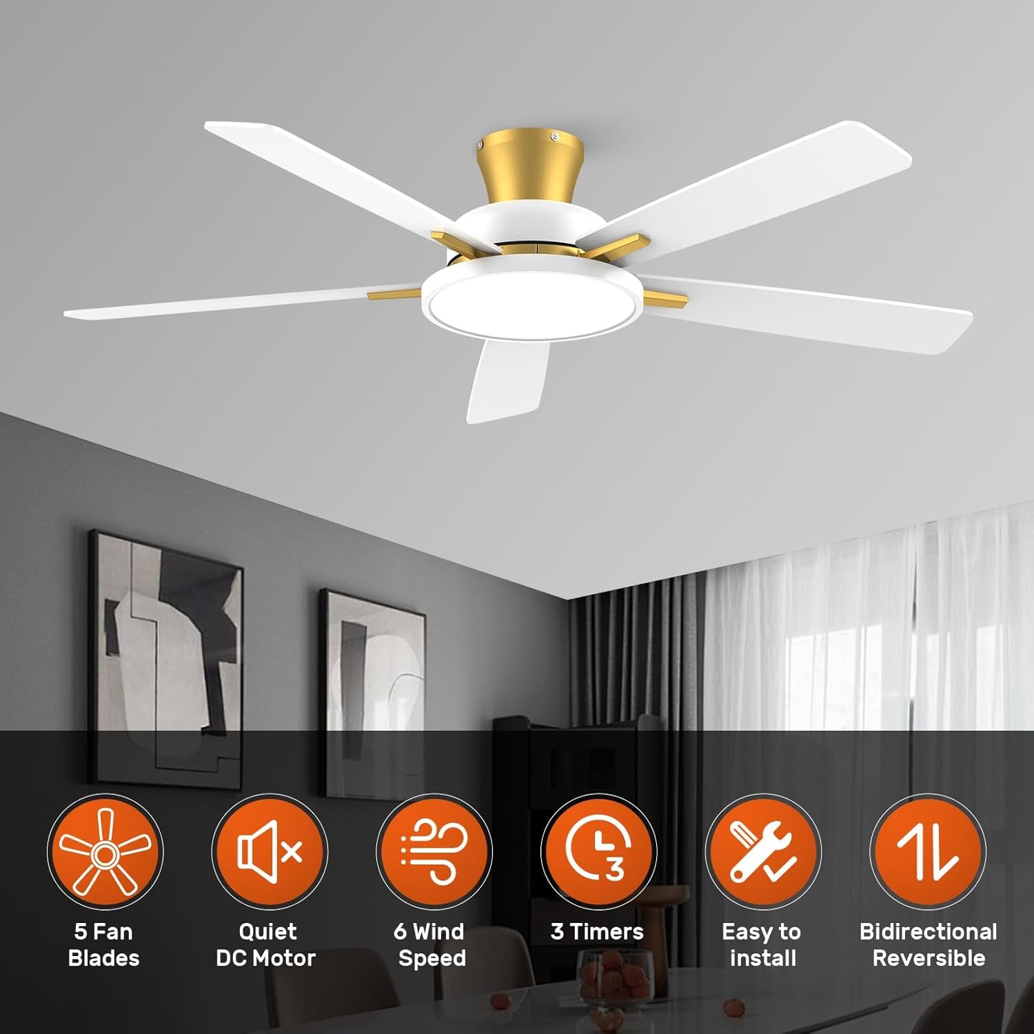 52 Inch Ceiling Fans with Lights and Remote,Ultra Silent Low Profile