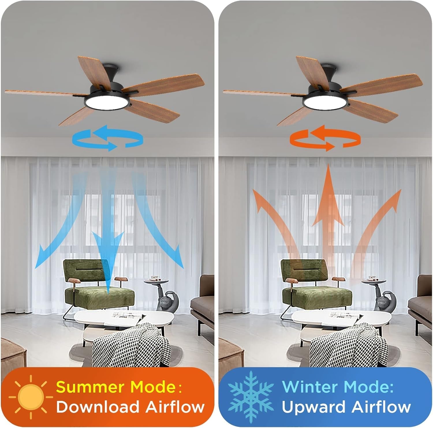 - Reversible Blades: Easily switch between downflow for cooling in summer and updraft for warming in winter, ensuring comfort all year round.