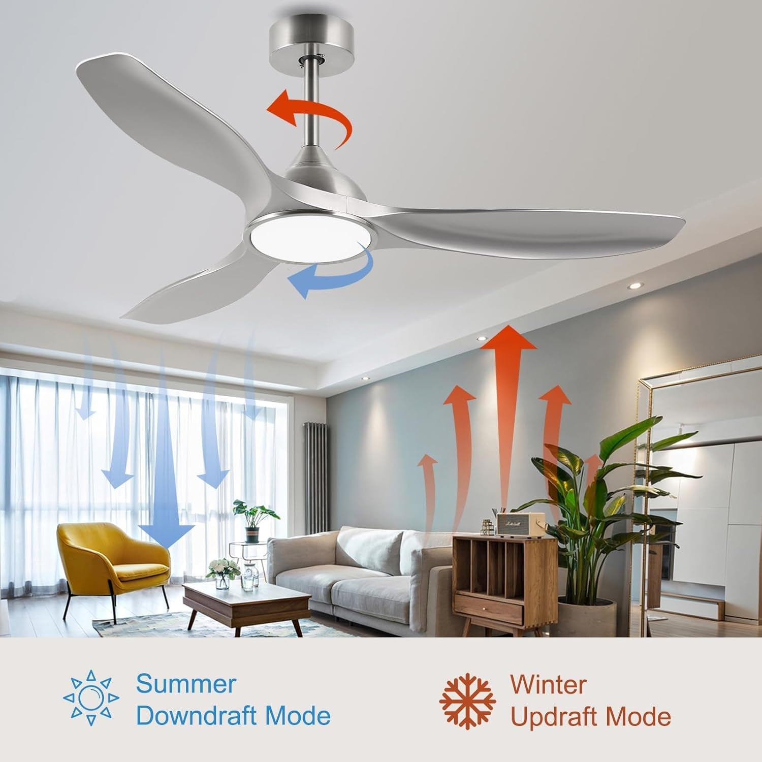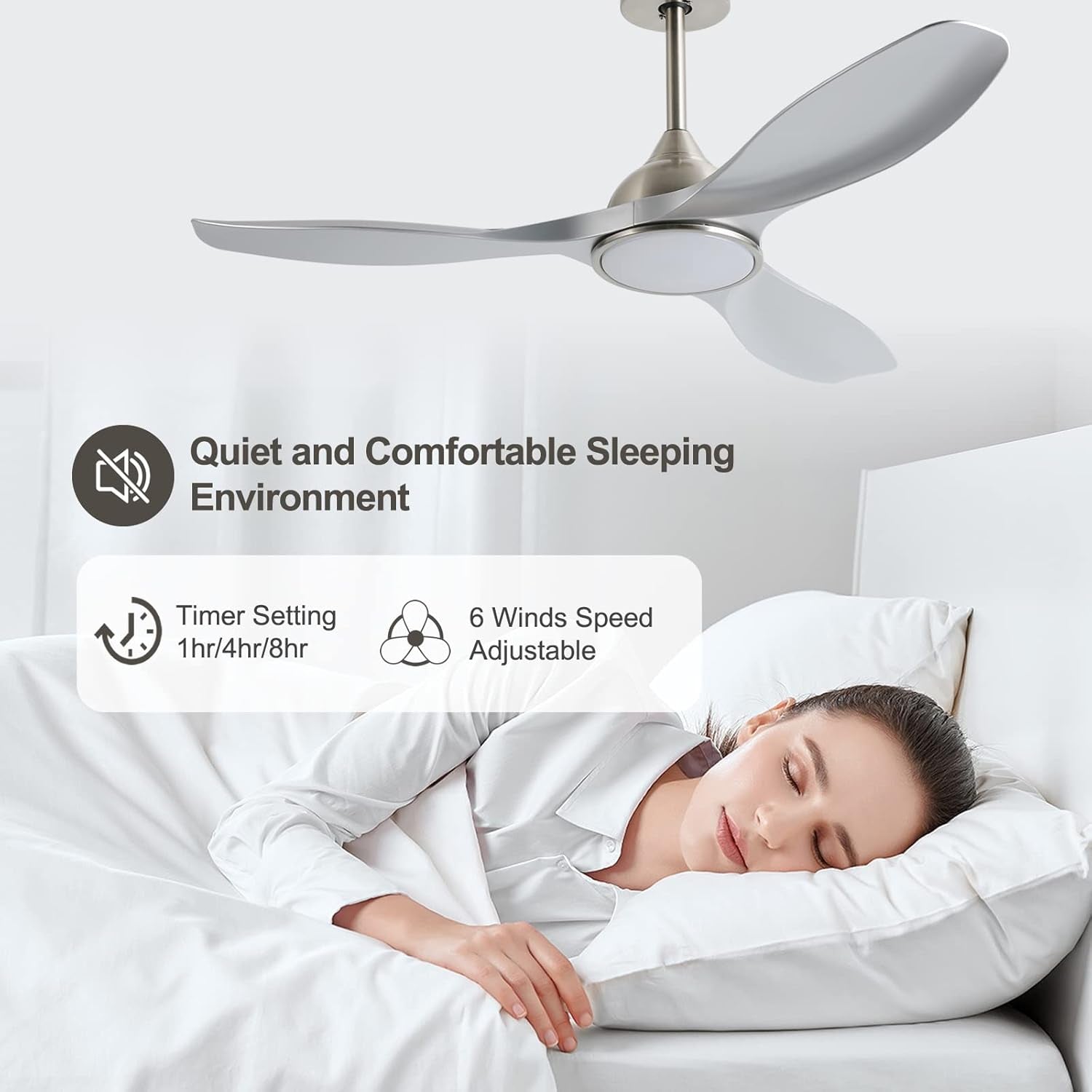 52 Inch Quiet DC Motor 6 Speed High CFM Modern Ceiling Fan with Lights