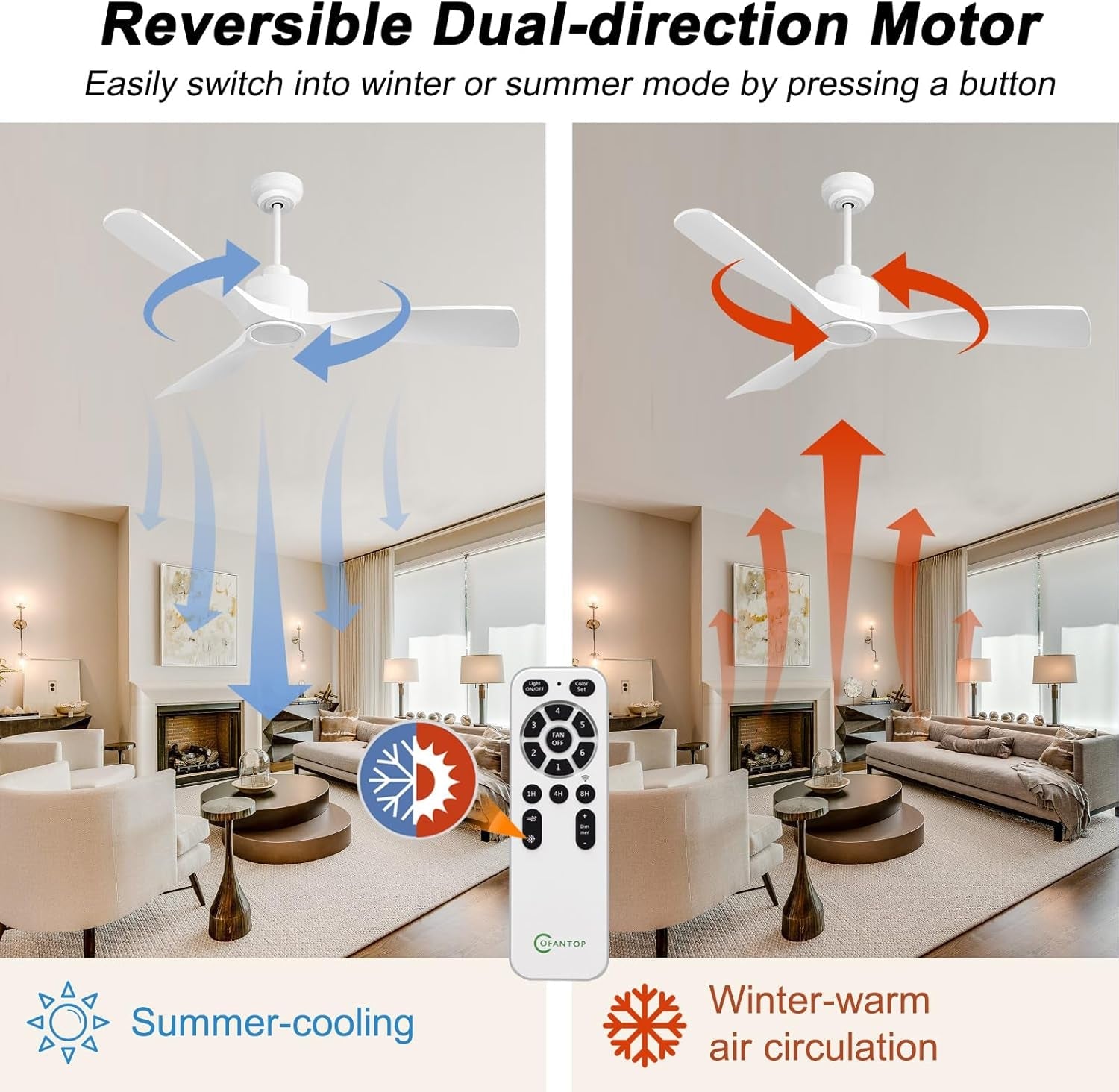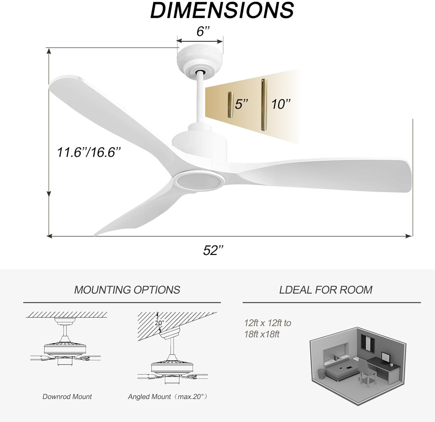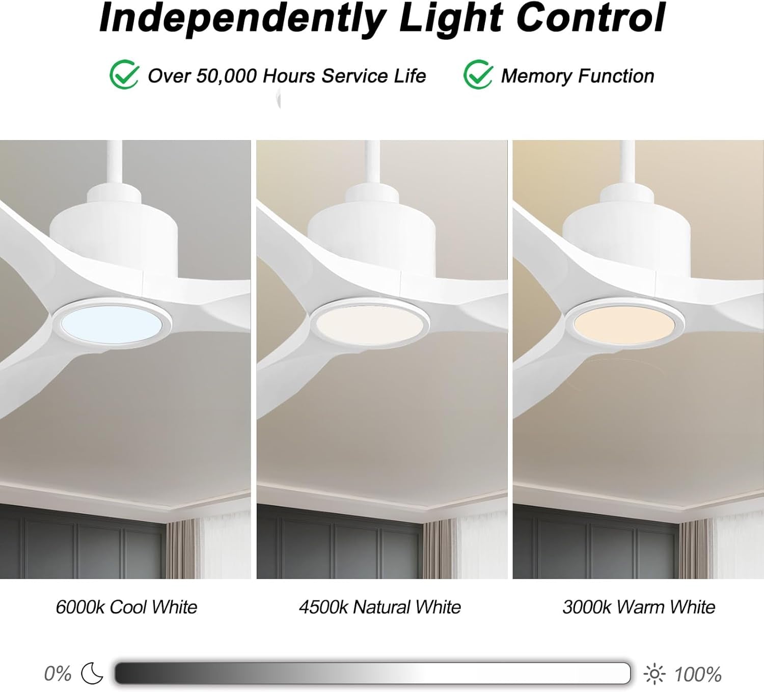 52 Inch Smart Ceiling Fan with Quiet DC Motor, 3 Blade High CFM Indoor