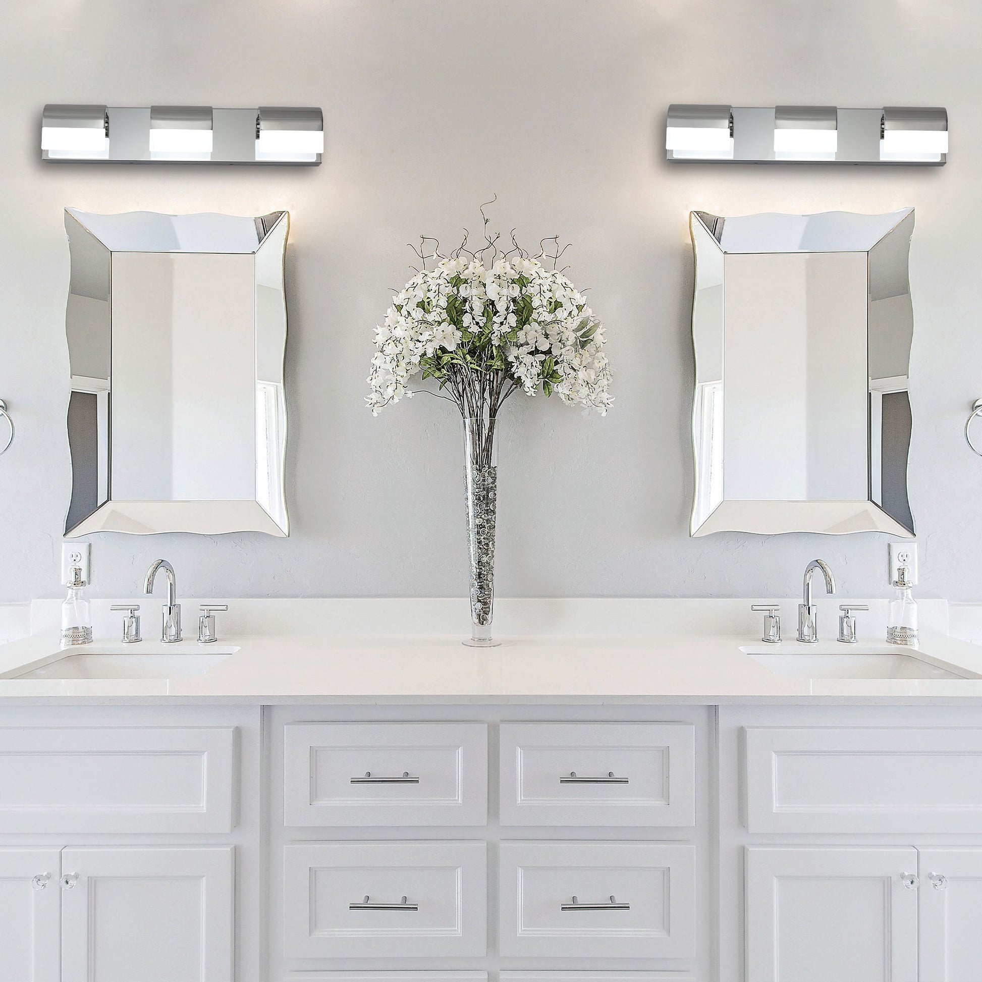 Chrome Modern Bathroom Vanity Lighting 3-Light LED Vanity Lights Over Mirror Bath Wall Lighting