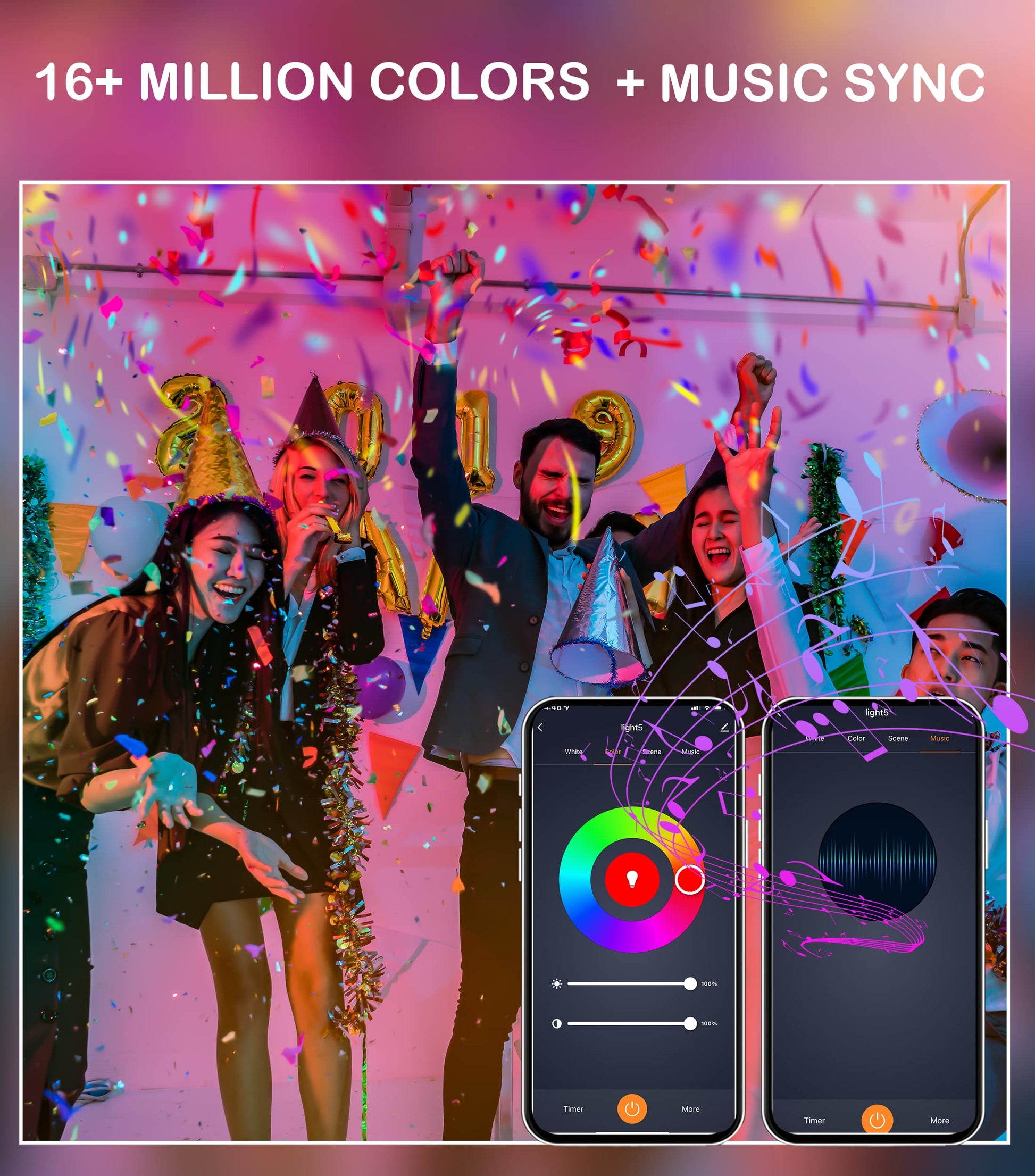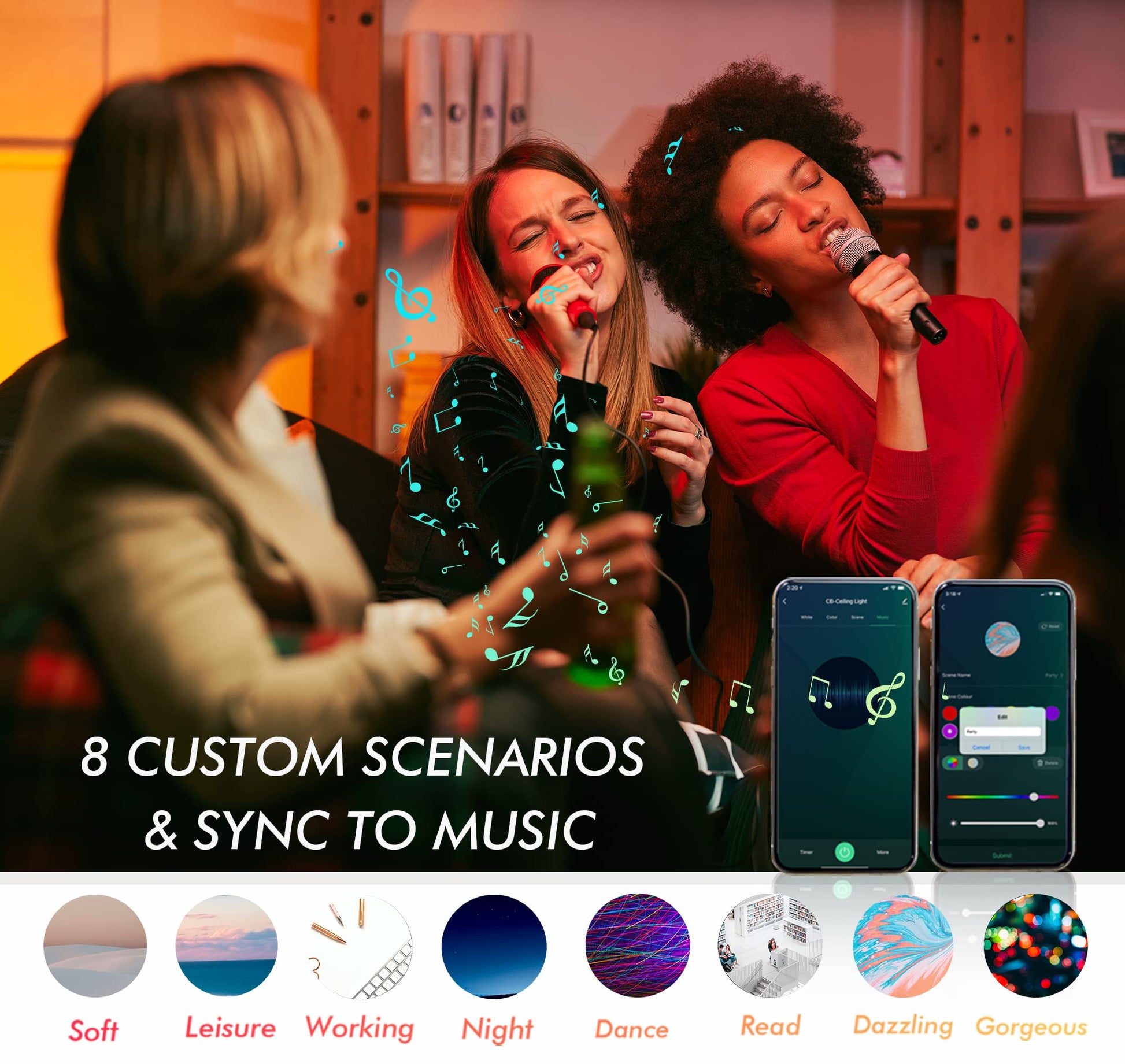 - 【Music Sync +8 Scenarios】 With wide range of CCT and RGB color, the light is available to custom 8 scenarios, which means it meets your different lighting needs, reading, working, sleeping or dancing etc. You can also make it sync to music, lighting would follow the change of the music beats, having fun with family and friends now!