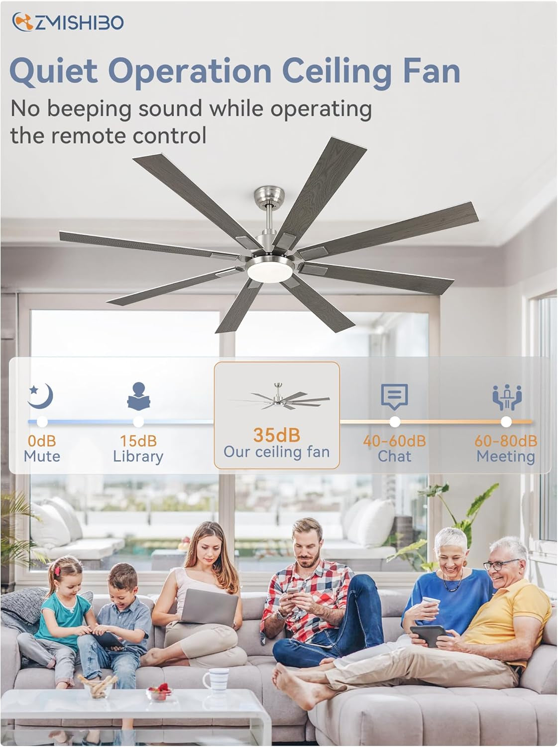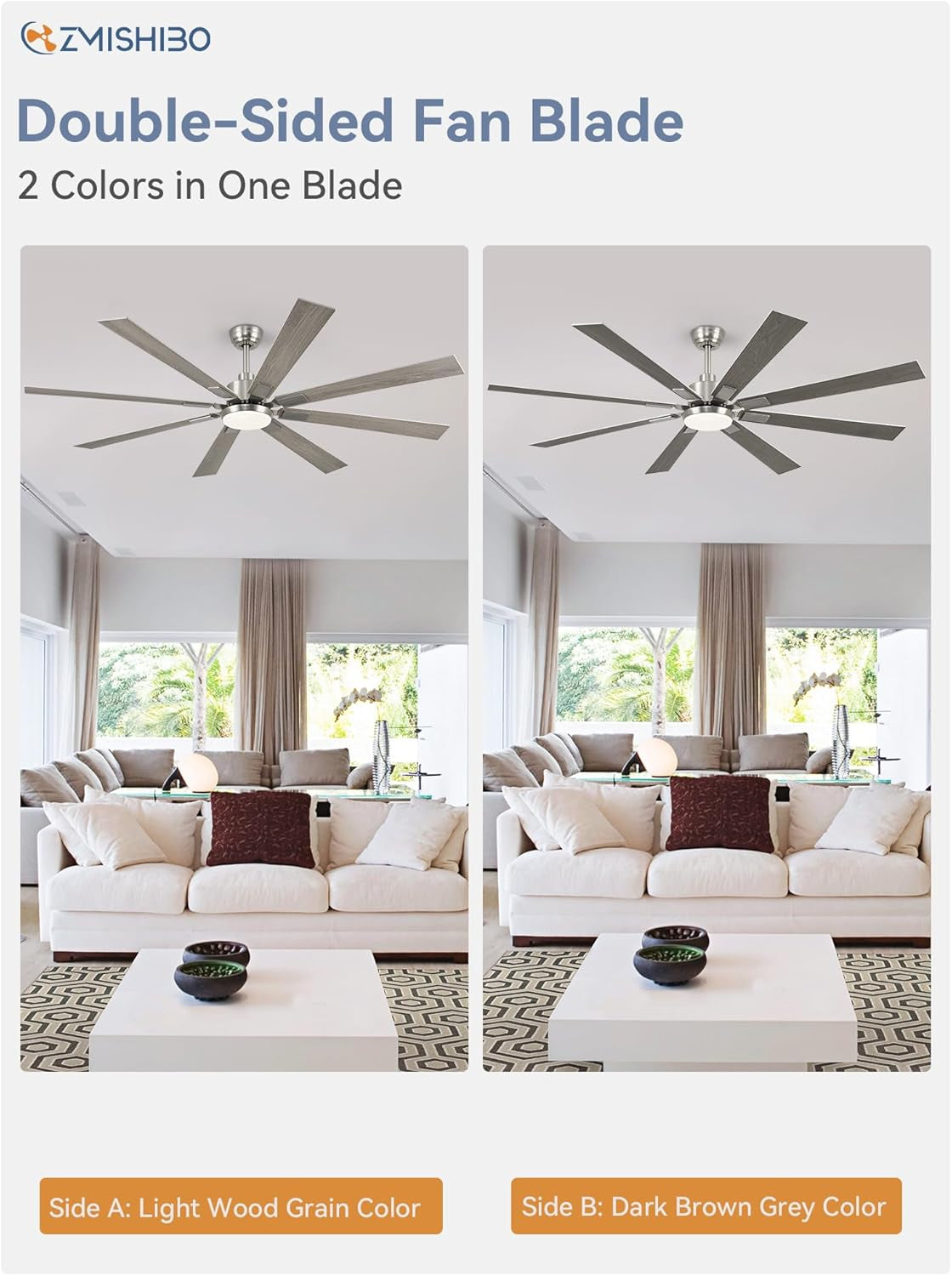 72 Inch Brushed Nickel Modern Ceiling Fans with Lights and Remote,