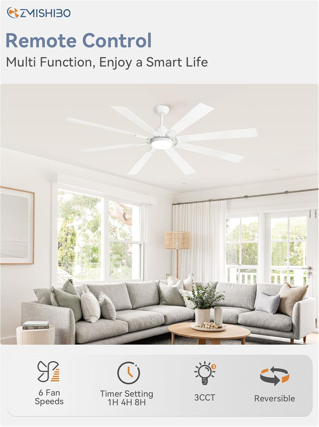 - Spacious 72-Inch Blade Span: Ideal for living rooms, garages, barns, or patios, featuring dual-color blades in milk white and row wood for a modern farmhouse aesthetic.